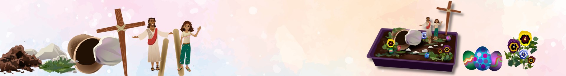 Help children physically place themselves within the Easter narrative. This “Extra Content” folder includes printable figures of Jesus and children. Kids can colour these in during the event, attach them to popsicle sticks, and place them in their finished garden as a visual reminder that Jesus is alive and welcomes them into His story.